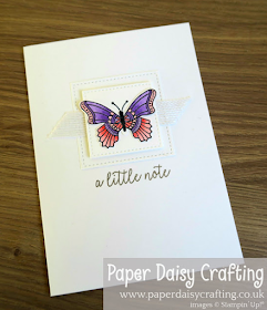 Jill made this card for a Team card swap. I saw thsi card when we were at a Pinkies Team day and I loved it. Jill made 5 different ones with different colours for the butterflies, of course I chose a purple one!